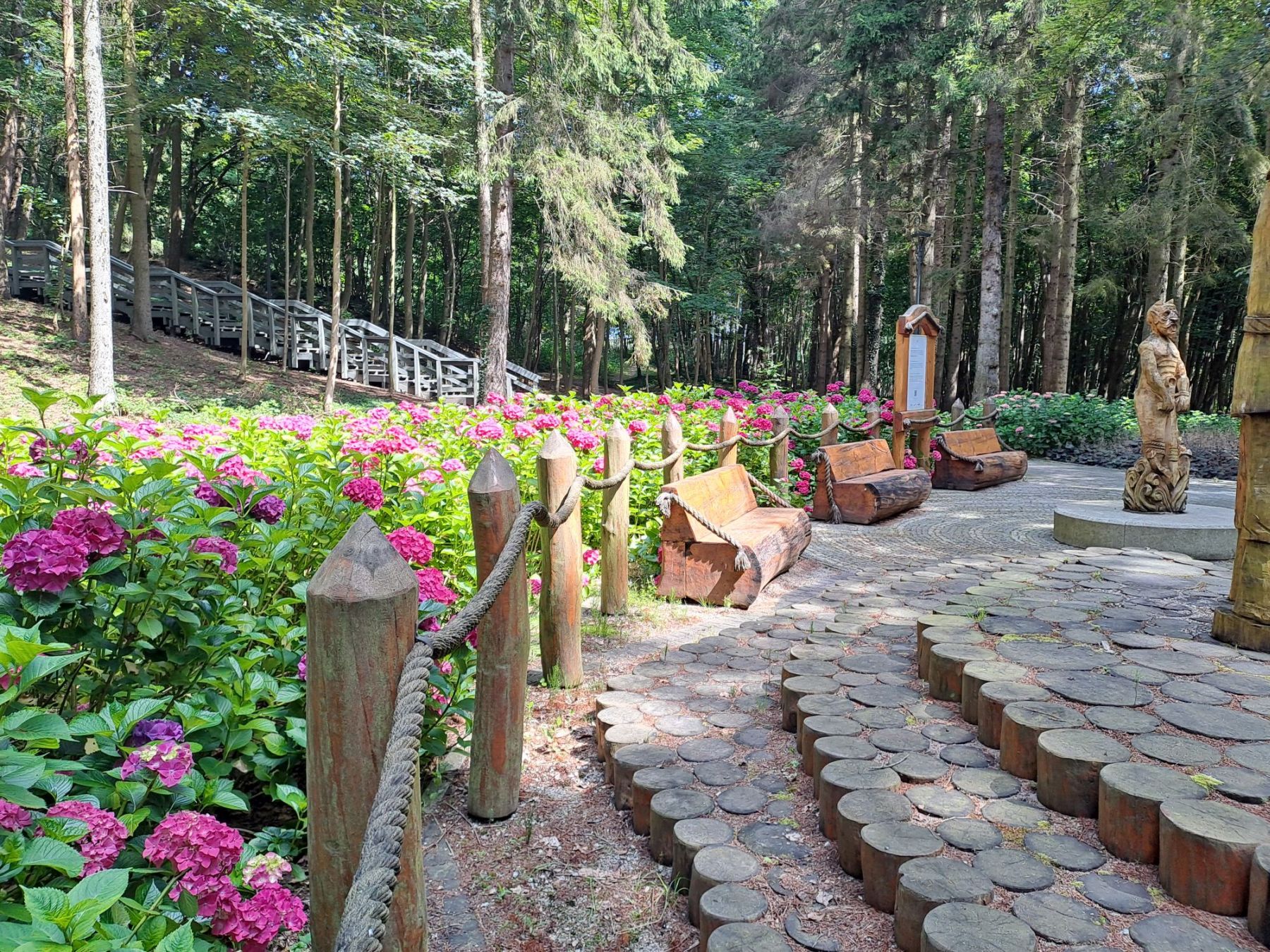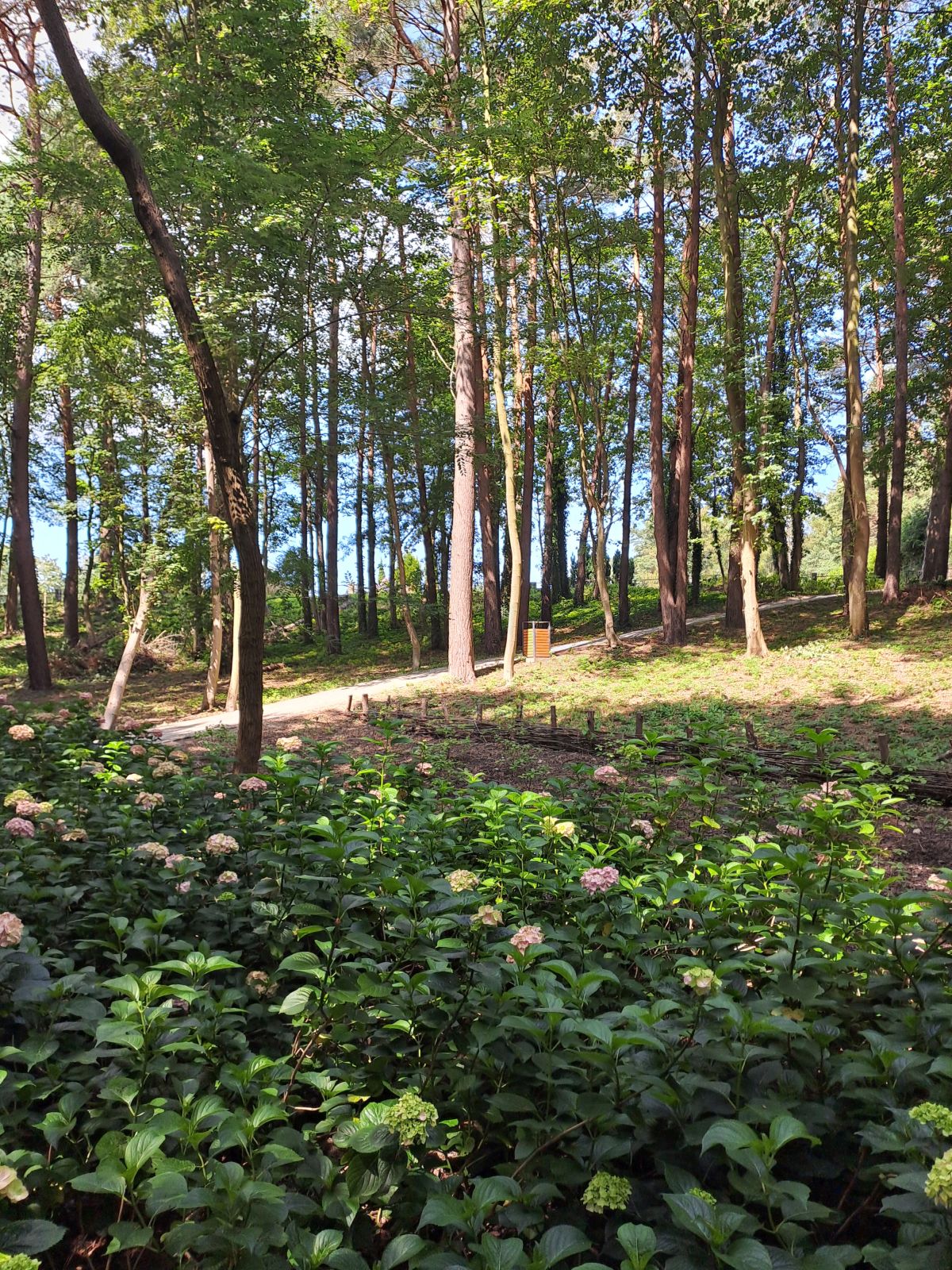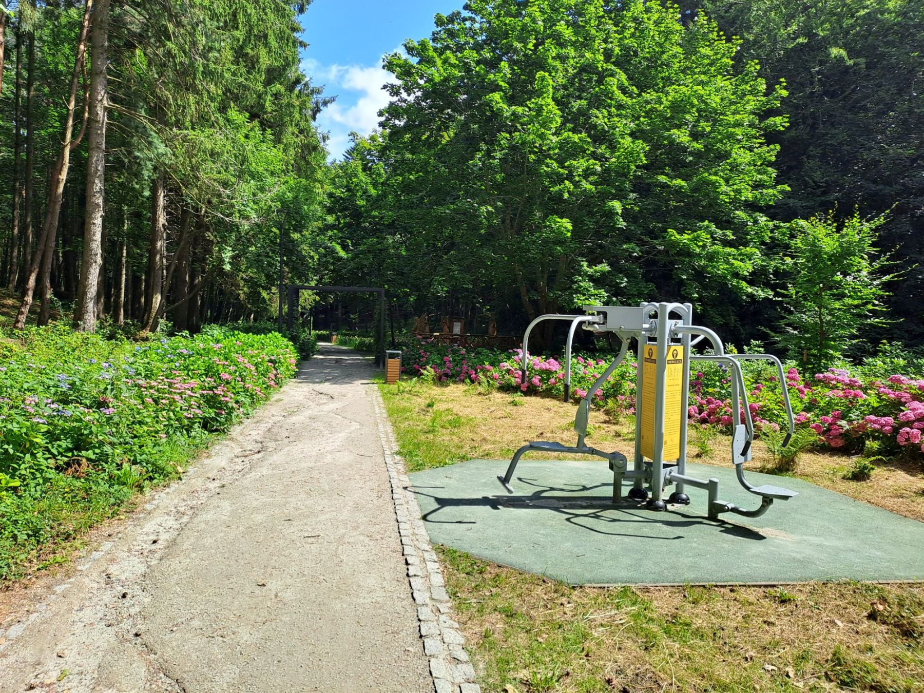 Przepiękny park leśny z hortensjami nawiązujący do tradycji kaszubskich, z hamakami i ścieżką zdrowia ze sprzętem do ćwiczeń. W parku znajduje się szlak drewnianych rzeźb nawiązujących do kaszubskich legend, wraz z ich tłumaczeniem w trzech językach. Funkcjonują dwie nowoczesne toalety. Infrastruktura sportowa jest położona także na terenie bezpośrednio przylegającym do parku, ale nie jest zalesiona. Obok wiata z możliwością robienia ogniska.