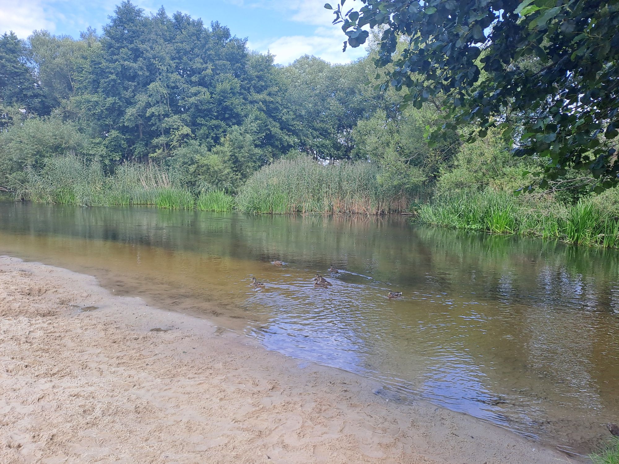 Wyjątkowe w parku: kawałek plaży przy rzece Redzie, tuż obok przystani kajakowej.